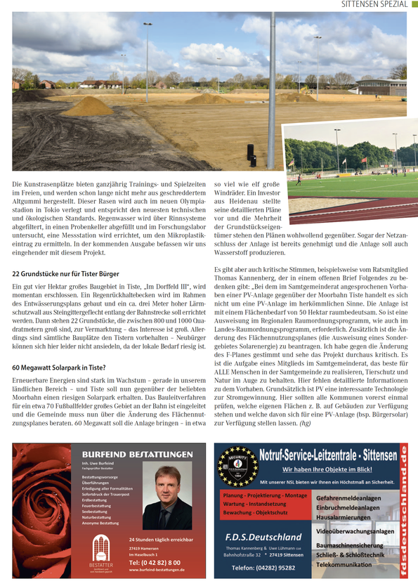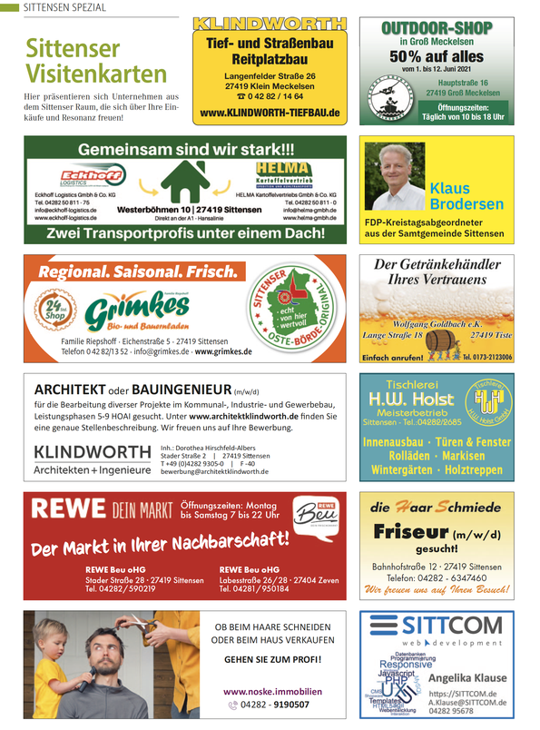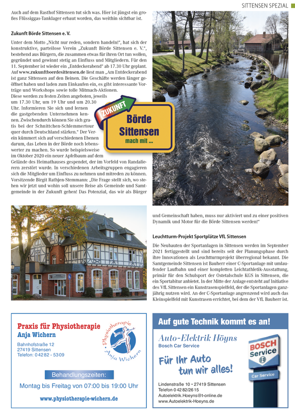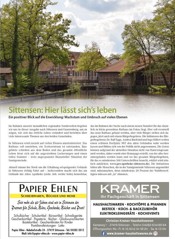 Im Rahmen unserer monatlichen regionalen Sonderseiten begeben wir uns in dieser Ausgabe nach Sittensen und Gnarrenburg, um zu zeigen, wie sich das örtliche Leben verändert und berichten über viele interessante Themen aus den beiden Gemeinden.