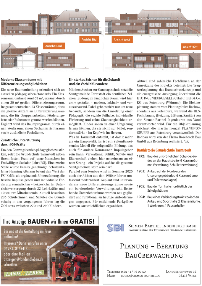 In der Samtgemeinde Tarmstedt entsteht derzeit eines der ambitioniertesten Bildungsprojekte im Elbe-Weser-Dreieck: Die Grundschule Tarmstedt wird zu einer vollwertigen Ganztagsschule ausgebaut – modern, barrierefrei, pädagogisch durchdacht und mit einem klaren Ziel: mehr Chancengleichheit für Kinder im länd-
