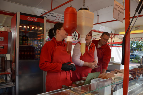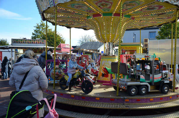 Nach dem Umzug ging es gleich auf den Herbstmarkt, der seit Freitag auf dem Rathausmarkt stattfand. Hier bildeten sich schnell lange Schlangen vor den Buden mit den Leckereien und auch die Fahrgeschäfte wurden reichlich genutzt.