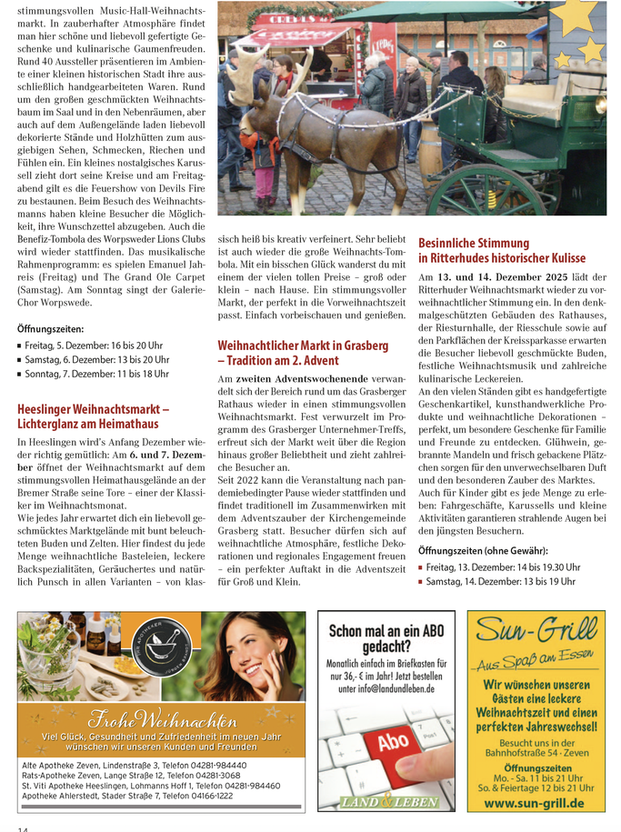 Das gesamte Land & Leben-Verlagsteam wünscht allen Leserinnen und Lesern sowie unseren treuen Inserenten, die das alles mit ihren Anzeigen erst möglich machen, eine frohe und besinnliche Weihnachtszeit und einen guten Rutsch ins Jahr 2026! (hg)