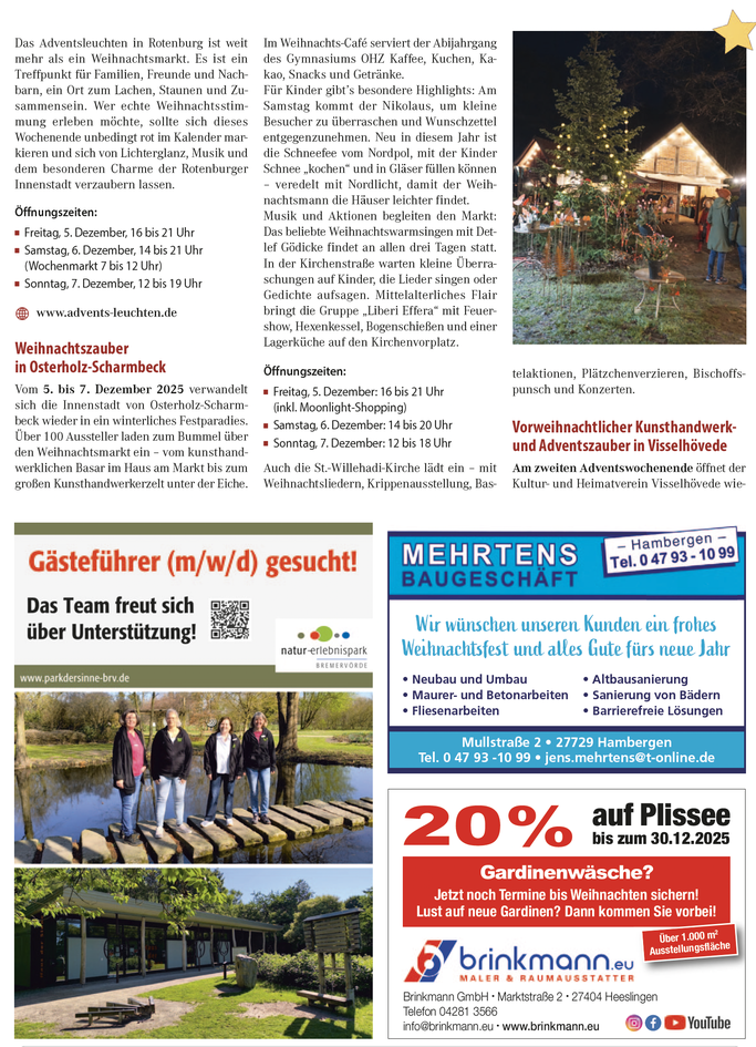 Auf den folgenden Seiten gibt es viele Tipps, um die Weihnachtszeit abwechslungsreich zu gestalten – außerdem finden Sie hier die jahreszeitlichen Grüße und Wünsche unserer treuen Inserenten aus der Region.